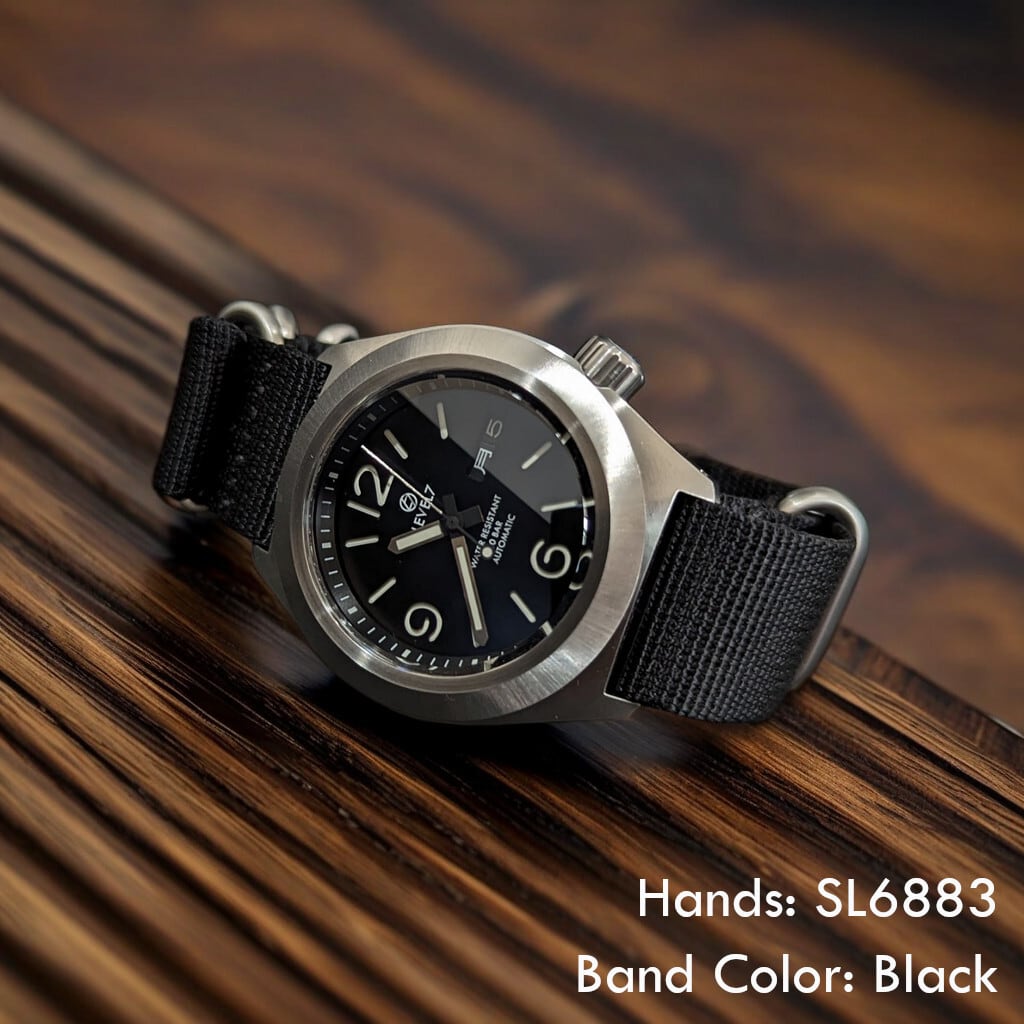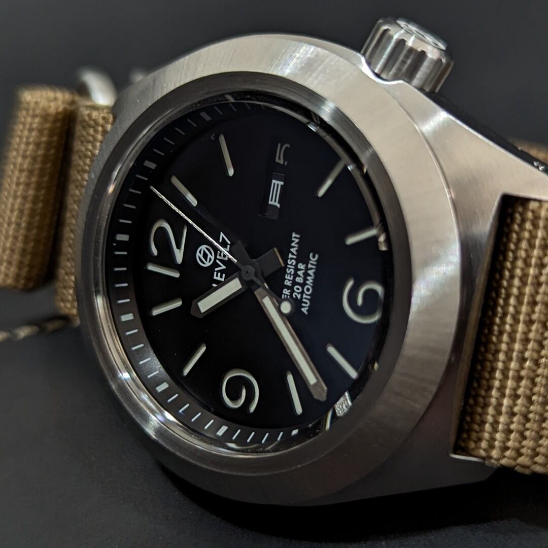 LV1-ARFIXE-Z "Black Dial, Steel FIXED Bezel"Nylon ZULU Strap NH36 Automatic Japan made Wristwatch LEVEL7