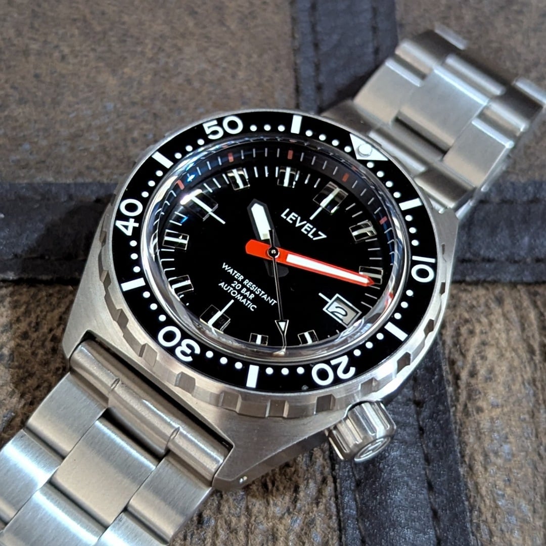 LV1-X1FBK-BK"Black Dial, Flat Bezel Insert" 20ATM water resistant NH36 Automatic Japan made Wristwatch LEVEL7