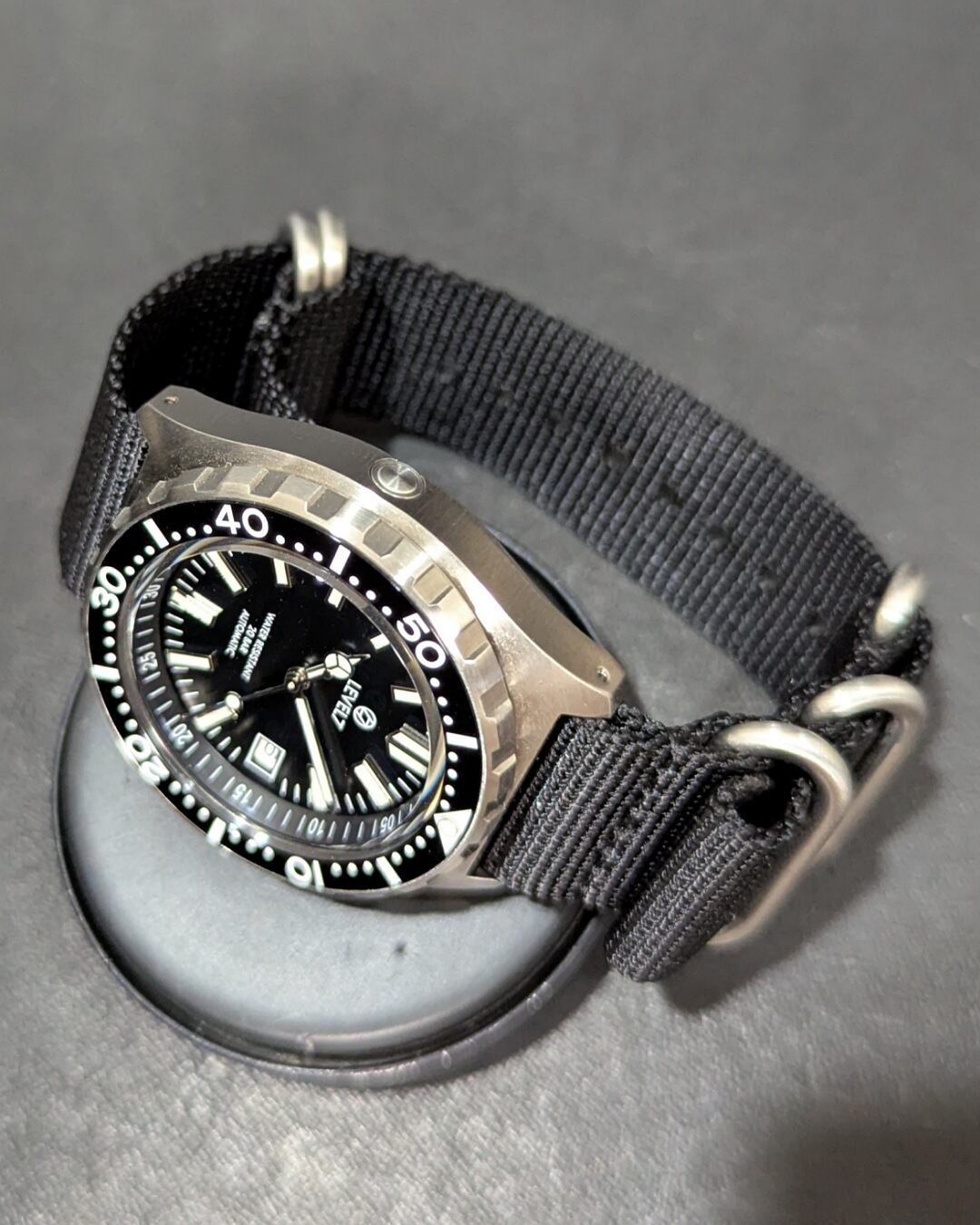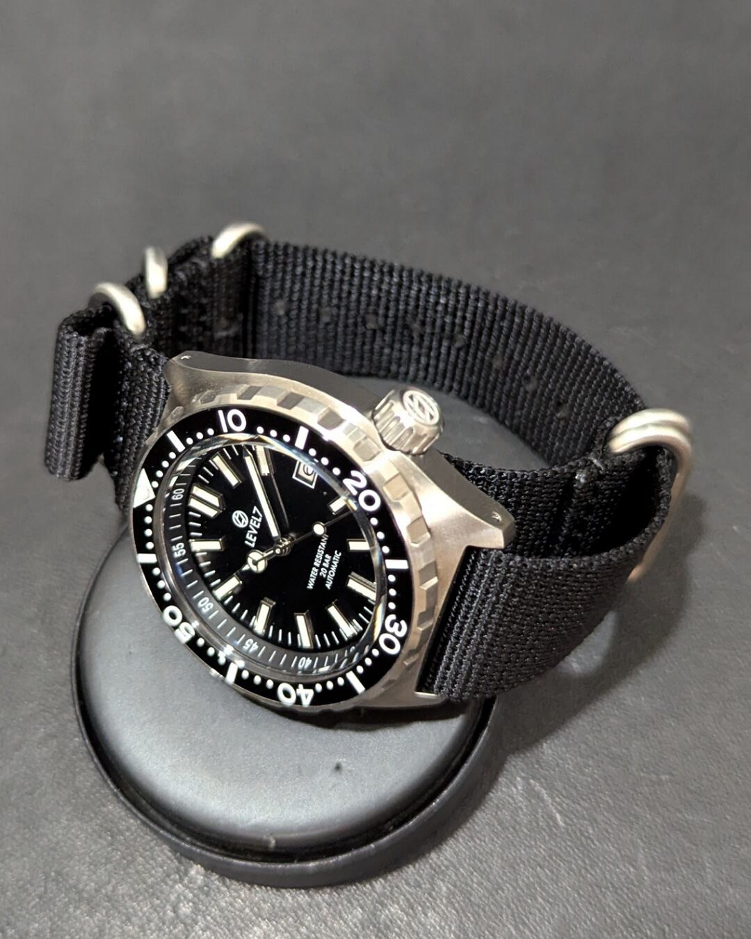 LV1-2NDFBKAR-1BK19-Z "Black Dial, Flat Bezel Insert, Double Dome Crystal" Nylon ZULU Strap NH36 Automatic Japan made Wristwatch LEVEL7